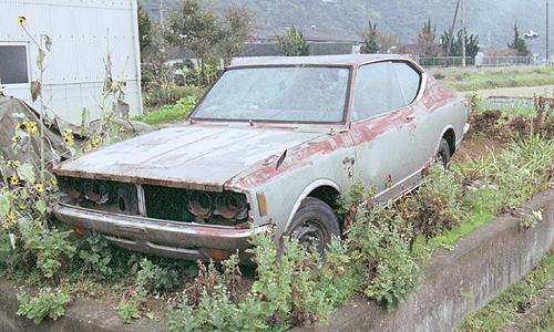 | トヨタコロナハードトップ アローラインコロナの後継型、顔はもぎ取られ、目は全てくりぬかれ、塗装はハゲハゲという程度極上(?)の草ヒロ。 かなりひどい状態だが、錆はそれほどひどくなく(無いわけではないが・・)、硝子窓も全て無傷で残っているのが不思議な感じ。 写真をよくよく観察してみると、後方写真右上にもう一台車が・・・、よーく見てみよう! 塔の上で晒し者・・・、もとい看板になっているジープだか、ジムニーだかが写っている。 一粒で二度おいしいだが、狙って撮ったわけではなくプリントしてから気づいた。 |