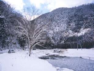 獣道・県道○○・××線 なんだかよく分からないが私の好きな場所、写真中央の樹はなんて名前なのかな? 近年山間部の田舎でも道が随分整備されたが、この場所は未だに一車線のまま。 夜遅くに通るとよく獣が出てくる、一番よく見かけるのは狸である。 狸は前照灯で目がくらむのか、わざわざ車に向かって走ってくる者が居り、実に危ない。 狐は車に出会うとすぐに逃げるが、眉に唾を付けなければいけないので面倒である。 鹿は車が近づいても逃げない者が時々いる、ごく至近まで車を近づけても逃げずにこちらをじっと睨んでいたりして、警笛をならすとやっと我に返ったように山に逃げていったりする。 熊はいるのだが警戒心が強く道路に出てきたりしないので、一度も出会ったことがない、又あまり出会いたくもない。 猪もまず見ることはない、会社の先輩が運転中猪と遭遇、とっつかまえようと車をぶつけたら車が壊れたとか。(無茶しまんな・・・) 猪は平気でそのまま逃げていったらしい。 ここではないが近くの町にはつちのこが出るらしい、生け捕りにすると2億円がもらえるらしい。 |