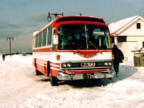 宗谷バス 最北の地で活躍する宗谷バスの車両、左は路線バスに使われる一般車両、稚内バスターミナルで発車を待つ大岬・宗谷岬方面行きのバス。 右は定期観光バス「ホワイトピリカ号」、実際に乗車して宗谷岬で観光した時のスナップ。6年前の撮影だが当時としてもかなり古い車両だったと思う。 この定期観光バスに乗ったのは2月、本来ならひねくれ者の私は定期観光バスなど利用せず、路線バスで観光するのだが、この定期観光バスは料金が路線バスと殆ど変わらず、安いのであえて利用してみた。 当日の朝乗り場に行くと、ビニールのヤッケとズボンで武装したガイドさんがあらわれた、これはただ者ではないぞとわくわくする。 上にもあるように幾分くたびれたバスに乗り込む、窓には内面から透明のプラスチックシールが貼り付けてあり、窓が曇ってきてもそこの部分だけは曇らず外がよく見えるようになっていた、うむ芸が細かい。 重装備で身を固めたガイドさんは30代後半とおぼしき人、ベテランらしくさすがに話が上手。宗谷岬では乗客みんな思い思いの行動、私は土産物屋のスピーカーから流れる歌謡曲「宗谷岬」を聞きながらあちこちウロチョロする。 宗谷岬を後にした後は稚内の航空公園へ、何をするのかと思っているとヤッケと長靴が支給され乗客みんなで雪遊び。 雪の滑り台をタイヤのチューブにまたがって滑ったり、歩くスキーをしたりとガイドさんは案内と遊び相手に大忙し。 北海道まで旅行に行って、定期観光バスに乗って雪遊びをするとは思わなかった・・・。(でもすごく面白かったけどね) 遊び終わったあとは熱いつみれ汁のもてなし、鍋から椀にすくってくれるのはこれまたガイドさん。 そのあと稚内のバスターミナルへ帰還、すぐに急行「サロベツ」に乗り込み稚内を後にした。 わずか半日のみの出来事だったが、この宗谷バスの旅は実に楽しい想い出となった、今でも稚内という地名を聞くとこの時の事を思い出す。(1999.7.26) |