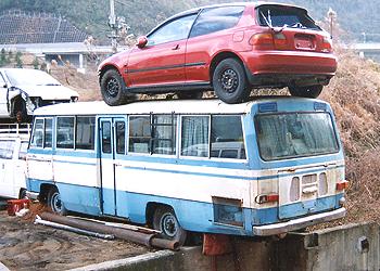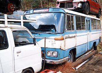 ニッサンエコー エコーを初めて見たとき、「シビリアンそっくりじゃねぇか」等と思ったものだが、実はその逆でエコーを発展させたモデルが初代シビリアンだったんですな。 エコーというと母方の爺さんが吸っていたタバコ、あのオレンジ色の包み紙が思い出されるが、これは全く関係ない。 ベース車両との関係があるのだろうが、ボディ長の割に、やたらと短いホイールベースが目を引く。 リアのオーバーハングが嫌に長く見えるのが面白い、後部座席に人が集まったら前の方が浮いてしまいそう。 この写真では屋根上に乗っかったシビックが、やけに後寄りに乗っかっているので、特にあぶなかっかしく見えて仕方がない。(2000.5.19) |