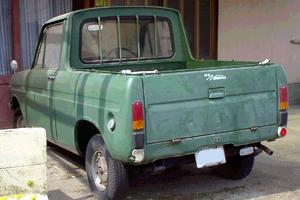 | マツダポーター 綺麗にカスタマイズされたマツダポータートラック、2サイクルエンジンを積む末期の型であろうか。 三菱360、ダイハツフェローといったライバルが、次々とキャブオーバー車に取って代わられるのを後目に、最後まで善戦した軽ボンネットトラック。 当時のマツダはキャブオーバータイプのポーターキャブも持っており、昭和50年代まで併売していたという事は、いずれにもそれなりの需要があったと云うことか。 個人的にはノーマルで乗って貰いたいクルマであるが、人の趣味をどうこう云うつもりは毛頭ないので、あしからず。ただリアの「マツダ」というシールをちゃんと残している所あたり、趣味的になかなか渋い。 | |