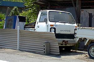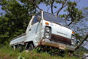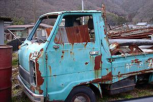 | ホンダTN ホンダN360のトラック版だから名前はTN。 TNシリーズの特徴はなんといってもその奇抜なデザイン、初期のタイプはフロントパネルにでっかくHマークが入っており、ホンダのクルマで有ることを大きく自己主張している。 後期のTNは軽トラック唯一というふれこみで4灯式ヘッドランプを採用したが、これが又なんともヘンチクリンなデザインであった。当時はグロテスクなゴテゴテしたデザインや、オーバーデコレーション気味のデザインがもてはやされていた時代だが、さすがにこのTNに追随する4灯式軽トラはなかった。 隣の家の人がかなり後年までこのトラックを使っており、ガラガラというホンダエンジンの音が今でも耳に付いて離れない。さすがに現役のものはここ数年見かけないが、数が出たクルマだけに草ヒロではかなりポピュラーな存在であると思う。 子供の頃の私はこのTNを見る度、「軽トラの癖に4つ目玉なんて生意気だ」等と憤慨していたものである。同時に常々「怖い顔」と目をそむけていた印象が有り、未だに正視することができない。(大嘘) 夜道で逢ったらさぞや恐ろしい事であろう、怖い物見たさというやつで一度お目にかかってみたい物である。 |