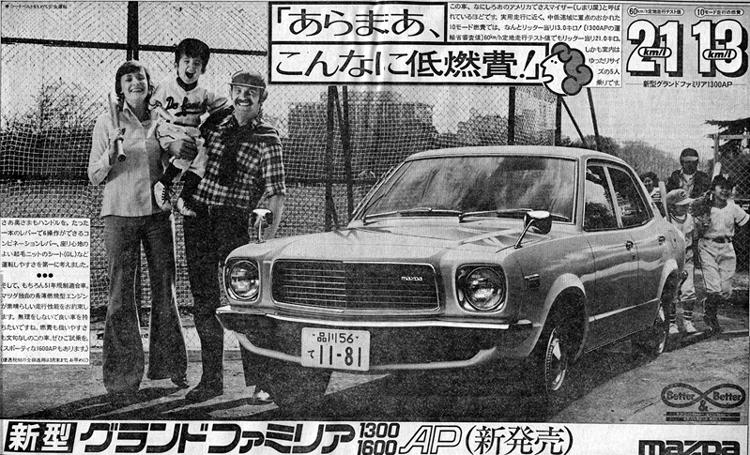 ファミリアと名前は付いている物の、実体はサバンナとボディを共有する姉妹車で、スタンダードのファミリアとは一線を画すモデル。但しサバンナがロータリーエンジン搭載モデルで有ったのに対し、グランドファミリアはレシプロエンジンオンリーで有った。