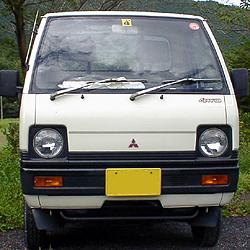 | 以前撮っておいた写真が有ったので、ついでのおまけ。 上で紹介したミニキャブの次世代モデルで有るが、奇しくもこちらも前期と後期でコーポレートマークが異なる。 前期モデルはMMCマーク、後期はおなじみのスリーダイヤマークとなる。 メインイメージをころころ変えるのは、あまり賢いやり方では無いと思うのだが、いかがな物だろうか。 |