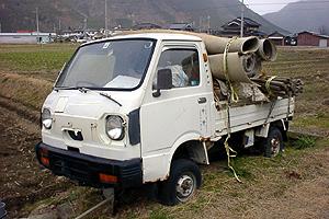 | こちらもグリルが失われたサンバー。 土地柄も関係していると思うが、このタイプのサンバートラックは圧倒的に4WDが多い。 | |