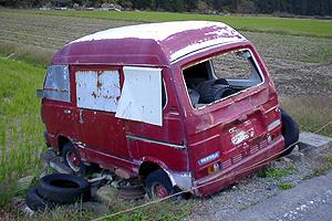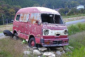 | トタン板で目張りをされているのは何故? | 後期のバンは、ハイルーフモデルが多い。 |