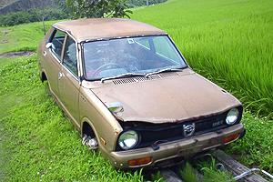 これは以前紹介したものの再掲。 これもレックス5なのだが、上に掲載してきたレックス5と見比べていると、エンジンフード右側に有る「REX 5」のオーナメント取り付け位置が異なる。 日本車大検索で調べて見た物の、真相は分からずしまい。 トップに出した赤いボロ・レックスは、この撮影から3年を経た同車の姿。 ワルモノの手にかかったレックスは、この後しばらくして撤去されてまいました・・。 |