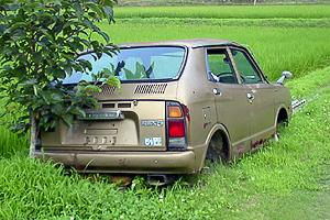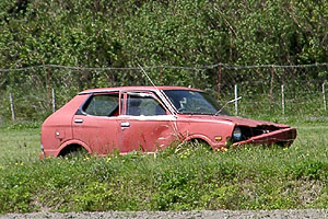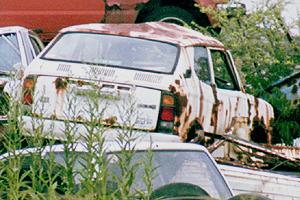続けてレックス5、こちらは遠くから一眼レフ400mm望遠で撮ったもの。 草むらに囲まれた廃車ヤードでの写真で、近づくのが面倒だったんだもんでこの程度で良しとしておく。(妥協に次ぐ妥協、私の人生そのものだな・・) |
