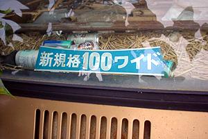 何とも誇らしげな「新規格」の文字が踊るステッカー。 「新規格100ワイド」というのは、(ボディ幅)100mm拡大という意味。 別に「新規格10ワイド」(cm)でも良いように思うのだが、数字が大きい方が景気が良いわなぁ。 メーカー製ステッカー貼付の、超一等地であるリアウィンドー下。 この次のレックス550では「SEEC−T 53年規制適合車」というステッカーが貼られる事となる。 |