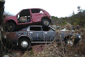 これまた非常に個性的なデザインのクラウンカスタム(ワゴン)。 これも後期型、当初ライトバンかと思って近づいたのだが、以外にもワゴンモデル。 車内をのぞいてみると8トラ・ステレオなどが付いていた、どんな人がオーナーだったんだろうね。 |
