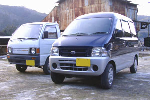 | 平成16年4月、我が家で長年活躍してくれた平成元年式ハイゼットトラックが御役御免となり、新車であるハイゼットトラックがやってきた。 旧型ハイゼットは大きな故障こそなかったものの、10年目を経過するあたりから錆びがひどくなり、最近になってウィンカーレバーが根元から「モゲル」という事件もあり、父もようやく代替を決意したらしい。 私としてはサンバーに興味があったのだが、私がお金を出すわけではないので車の選択については一切口出しはしなかった。でもATはやめて欲しかったなぁ・・。 実家のある村では、なぜかこのタイプのハイゼットトラックが大人気。新規格以降の軽トラックは殆どがこの白いハイゼット、さして大きくない集落に10台近く同じ車があるというのもスゴイことだと思う。 今回購入したハイゼットは前述のとおりAT車。その上4WD、エアコン、パワステ、セコハンながらカセットステレオまで付いた超デラックス仕様。 当然DOHC、EFIなのであるが、運転してみればやはり軽トラック。 軽トラを馬鹿にする気は毛頭ないが、古い軽トラと比べても特別スゴイと思わせる要素は少ない。 ともあれ旧型同様、この車にも末長ーく活躍してもらうことになるだろう。 |
