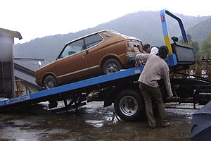 長ーい間不動状態で放置していたレックスですが、某掲示板での書き込みがキッカケとなり、新しいオーナーの元へと嫁ぐことが決まりました。 新しいオーナーは長年スバルを愛してこられた、筋金入りのスバリスト。 レックスについても強い思い入れをお持ちのようで、2サイクルレックスで北海道旅行をした事など、色々な思い出を伺いました。 この方は現在もGSRをお持ちなのですが、火事・類焼によって車体の半分を焼損というアクシデントがあり、復活のためのドナーとして同型のレックスを探しておられたようです。 私のレックスはエンジンがダメ、加えて長年放置していたことによってブレーキ他機能部品は全滅の状態でしたが、ボディは比較的錆びも少なくベースとしては可能か、とお譲りすることになりました。 実車は先日オーナーが引き取りに来られて積載車で移動、新しいオーナーの手元で立派な車庫に入れてもらい、レストアの時を待っています。 正直な所、不動になってしまってからは持て余していた感があり、興味にかられて入手したものの故障後放置してしまったことには後めたさを感じていたのですが、活かせる状態で次のオーナーに引き継いでいただけたことで、少しは私の気も晴れた思いがします。 | |