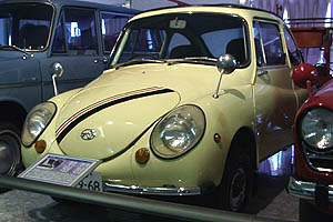 日本自動車博物館の展示車。 ヤングSかSSか、語る知識がないのでこれ以上しゃべりません。 ただ当時の写真と見比べるとボンネットのスバルマークの形状などが違っており、少々オリジナルとは異なっている模様。 |