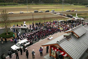 地元住民と小学生による開業セレモニーが催されていた。