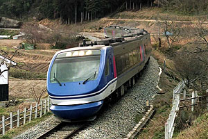 普通列車用 HOT3500形 開業時に新製された富士重工製気動車。 形式のHOTは、兵庫、岡山、鳥取という走行自治体の頭文字から採られたもの。 |