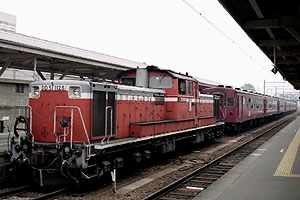 朝行くとDD51と急行但馬号がいつも顔を揃えていた。 この写真ではDE10が写っている。 |