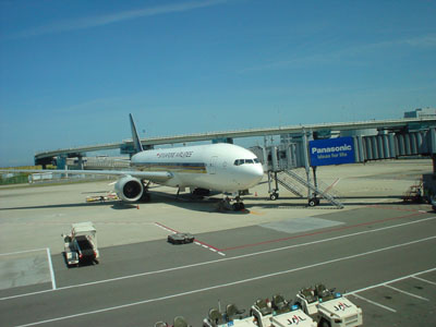 関空にて、シンガポール航空機