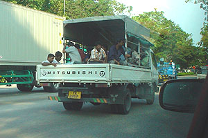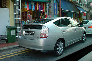 | シンガポールでよく見かけるのが、荷台に人を乗せたトラック。 頻繁に何度も見かけたが、荷台に乗っているはインド系の顔つきをした人ばかり。 インドや、バングラディシュからの出稼ぎ労働者が主であるらしい。 私が仕事をした現場でも、現業部門はほぼ全てが出稼ぎ労働者。 彼らが発する合図の声が、日本語の「オイ!」という声に聞こえてならず、何度かはっと驚いたことがあった。 上写真のトラックはニッサンキャブスター。 日本で言うところのニッサンアトラスであるが、これが非常によくみかけた。 前述のとおり、乗用車でもニッサン車を頻繁に見かけたが、当地ではニッサン車の人気が高いのだろう。 そのほか中型では、三菱キャンターの姿が多く、キャブスターとキャンターは常に視界に入っているような印象があった。 偶然その2車の写真を掲載しているが、これはあながち偶然ではなく、数の多さを物語っているものだと思っていただきたい。 タクシーの車内から撮った写真であるが、このときのタクシーはトヨタのウィッシュだった。 街中で見かけるタクシーは、トヨタのコンフォートが圧倒的に多かったが、こういったミニバンタクシーも何度も見かけた。 コンフォートタクシーには複数回乗ったが、これは日本のタクシーそのもの。料金メーターはデジタルタイプで、領収書も感熱紙を使うレシートタイプの印字機械が備えられている。 シンガポールでもシートベルトは義務化されており、どの運転手も発車前にキチンとシートベルトを付ける。何度か乗ったが、運転手は中国系の人ばかりで、無線の雑音が聞こえないことを除くと、日本のタクシーに乗っているような気がした。 | |