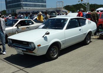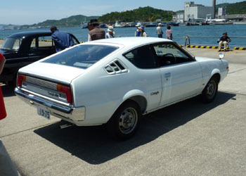 | ランサーセレステ 希望ナンバーの番号が「19-75」になっていることを見ると、1975年(昭和50年)式だろうか。 フルノーマルのスタイルでパリッと決められた、とてもキレイな車だった。 スカイラインやセリカといった一線級からすると、マイナークラスという扱いになるのだろう、現役で残っている車は非常に少ない。 | |