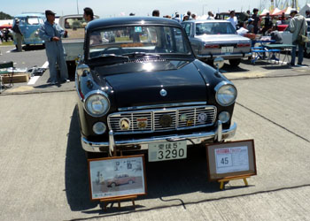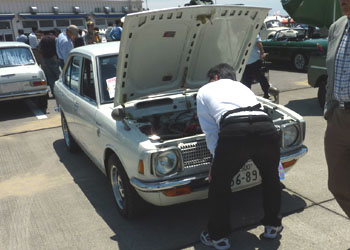 | ホンダスポーツ600 人だかりが出来ていたのは、エンジンルームをオープンにしてアイドリング中のホンダスポーツ。 私も近寄って音を聞かせてもらったが、軽やかないい音がしていた。 | |