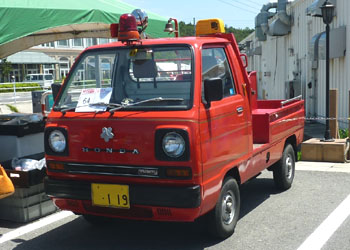 | TNアクティ 消防団上がりだろうか、所属表記はキレイに消されていて、ポンプやホースといった機材も全て外されていたが、それでも現役車と見まがうような雰囲気が出ている。 | |