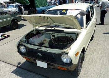| スズキフロンテ 残念ながら、いまひとつギャラリーが少なめだったように見えたスズキフロンテ。 現役車はもちろん、草ヒロでも非常に現存率が少ない貴重なモデルなのだが、濃ゆーい役者がそろったイベントでは埋没気味か。 | |
