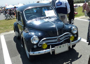 | 日野ルノー 今回のイベントでは分類番号がヒトケタ、つまりワンオーナーカーと思われるクルマが大変多かった。 このルノーのナンバーも「岡 5」。 生産されてから50年前後が経っているクルマが、立派に自走状態で残っていること、またそれを維持していること、うーんすごいなぁ・・。 | |