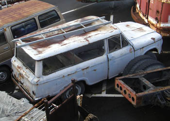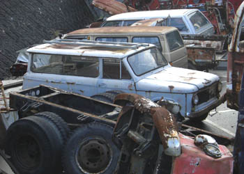 | これは博物館から少し離れたところにある、付属施設らしき場所に置かれている日野ブリスカ。 このブリスカは、平成5年に博物館を訪ねた際に一度見かけていたのだが、その後別の場所で保管されていたらしく対面の機会がなかった。今回コンマースとの対面と同時に、思いがけず嬉しい再会が出来た。 最初に会ったときには既に廃車同然の状態だったと思うのだが、それから20年近く経った割には、あまり変わっていないような気もする。 現存するものが何台あるのかは知らないが、これも相当な稀少車であることは間違いない、あーありがたやありがたやー。 | |