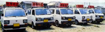 | 私の場合、なんかの雑誌だったか、本で見たなーという感じで資料を探すと、かなりの確率で見つからないことが多いのだが、今回は割とアッサリと写真が出てきたので紹介。 富士重工の広報誌、カートピアでこの業者さんが紹介されていた。 以前はかなり手広く商売をされていたようで、無線機を搭載して、残業している会社から呼び出しがあれば、夜食を出前するなどしていたらしい。 |